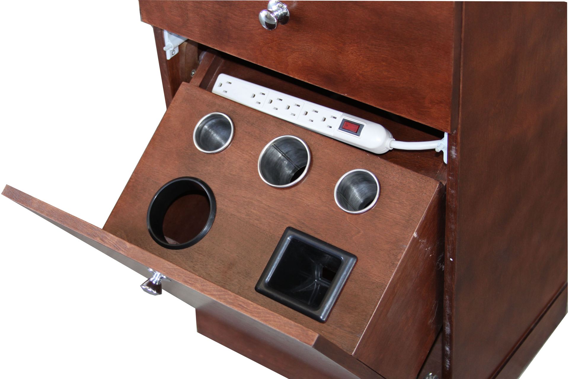 panel with many holders and outlet strip with long cord. This station has everything, Ships