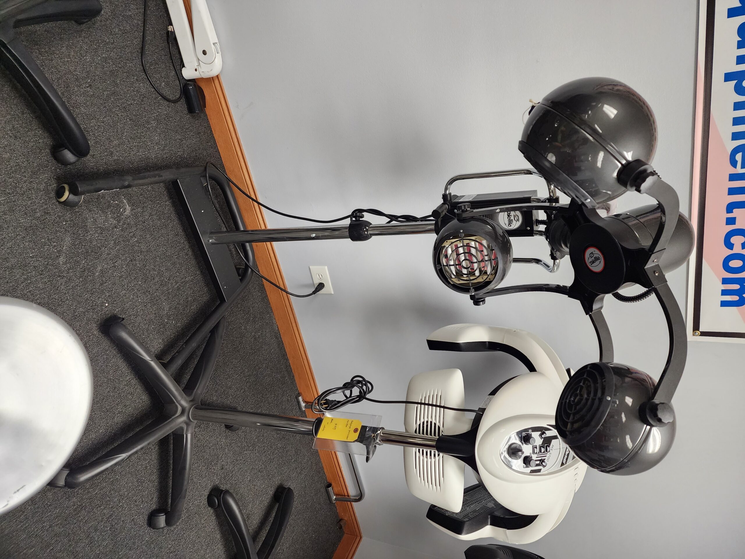 Satellite hair processor for hair coloring, perms and treatments of the scalp. High quality all metal unit with little plastic pieces. Rotates around head evenly. Made in Italy;